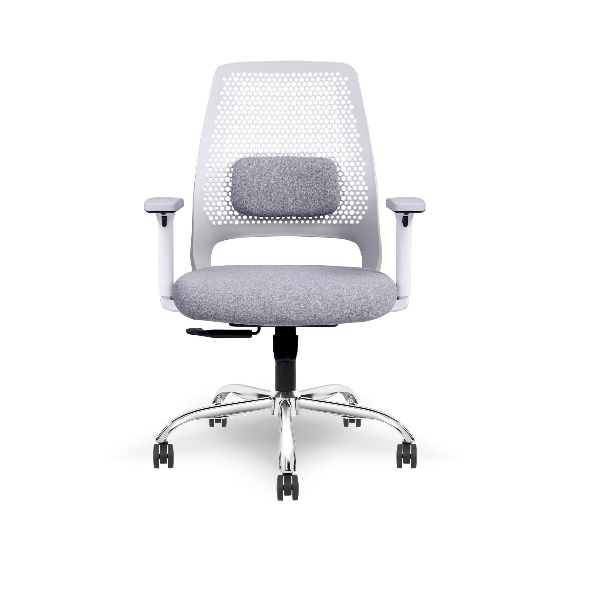 Advanced Ventilated Backrest: Unique perforated back design ensures continuous airflow, keeping you cool and comfortable through long hours.